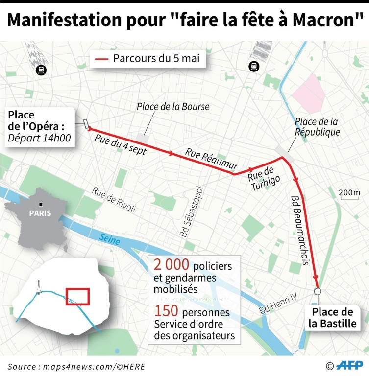 "La fête à Macron", manifestation "pot-au-feu" samedi à Paris, devrait être "belle et festive", selon ses organisateurs et La France insoumise, qui comptent sur les quelque 2.000 policiers et gendarmes prévus sur le terrain pour empêcher les black blocs de venir gâcher la journée, comme le 1e mai.