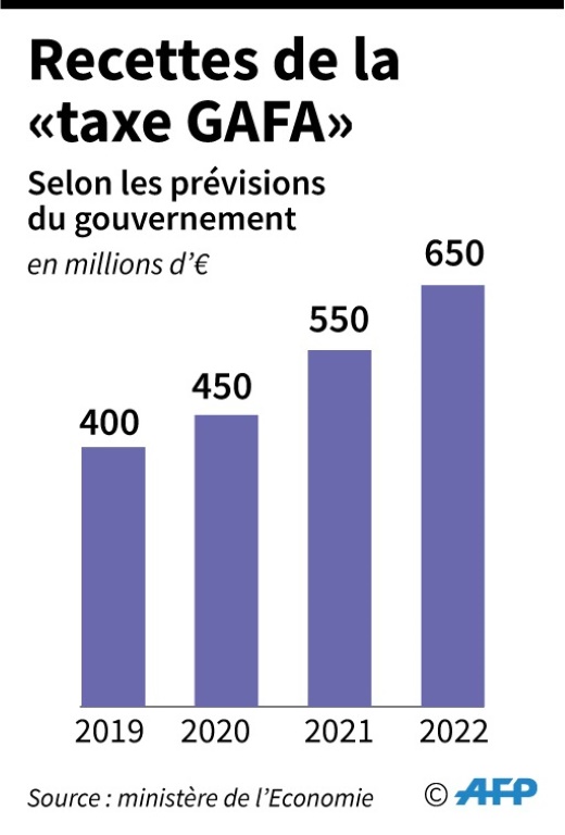 La "taxe Gafa" (acronyme de Google, Amazon, Facebook et Apple), déjà adoptée à l'Assemblée nationale, doit faire de la France un des pays pionniers en la matière, en dépit de l'opposition des Etats-Unis. La chambre haute a adopté l'ensemble du texte, qui comprend également un volet sur l'impôt sur les sociétés, par 181 voix pour et 4 voix contre et 158 abstentions.