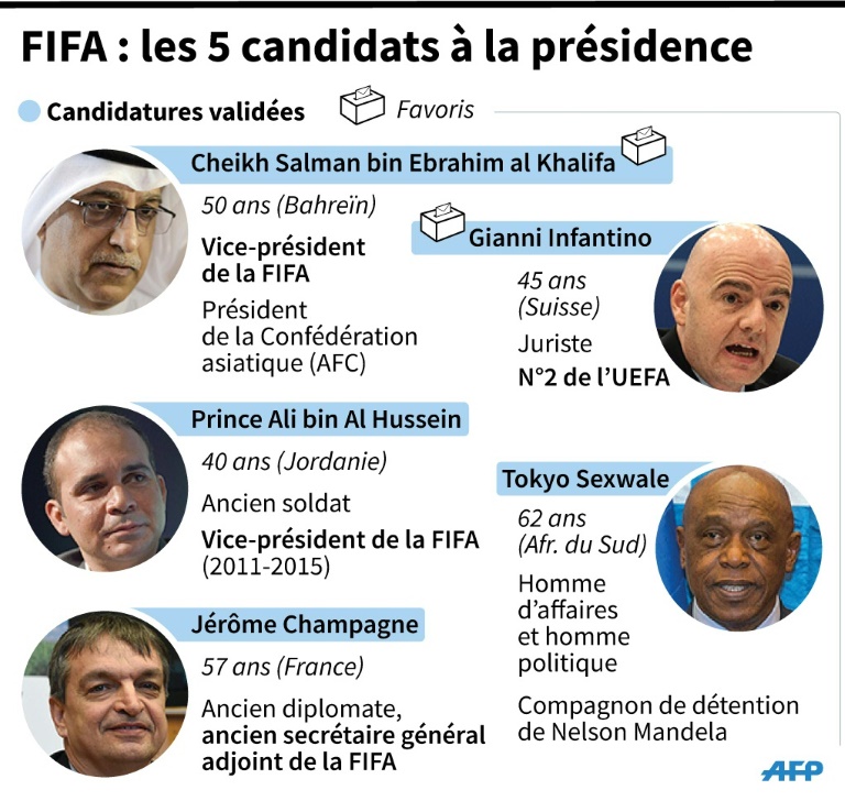 Suspendu huit ans le 21 décembre par la justice interne de la Fifa, tout comme Blatter, Platini s'est retiré de la course à l'élection et Infantino a été choisi par l'Europe comme son candidat de substitution.