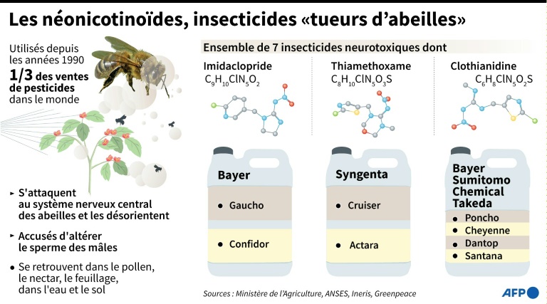 En 2016, le Parlement a voté l'interdiction des produits phytosanitaires à base de néonicotinoïdes, famille de pesticides qui agissent sur le système nerveux central des insectes et des mammifères, interdiction pleinement applicable depuis 2018.