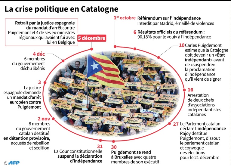Après des semaines de tensions et de vive inquiétude en Europe face à cette fièvre sécessionniste, et alors que les entreprises par centaines déménageaient leur siège social hors de Catalogne, ils ont finalement déclaré l'indépendance le 27 octobre.