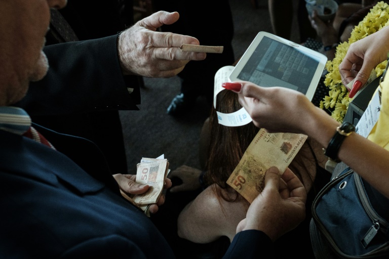 "Nous buvions du champagne, maintenant, nous sommes à la bière", regrette Teresa Aczel Quattrone, Brésilienne de 70 ans arborant un lourd collier de perles et un chapeau à large bord, dans le très sélect Salon des Roses de l'hippodrome de Rio de Janeiro.