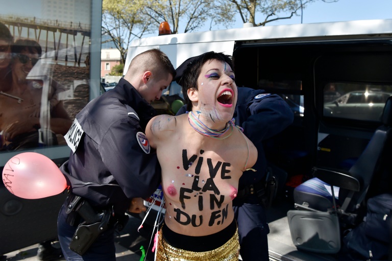 Les Femen ont par ailleurs posté dimanche matin sur leur compte Twitter une photo de militantes, toujours torse nu, armées de balais, faisant mine de nettoyer la place de l'Opéra à Paris, avec cette légende: "Les #Femen nettoient la haine laissée par Marine Le Pen là où elle faisait habituellement son discours".