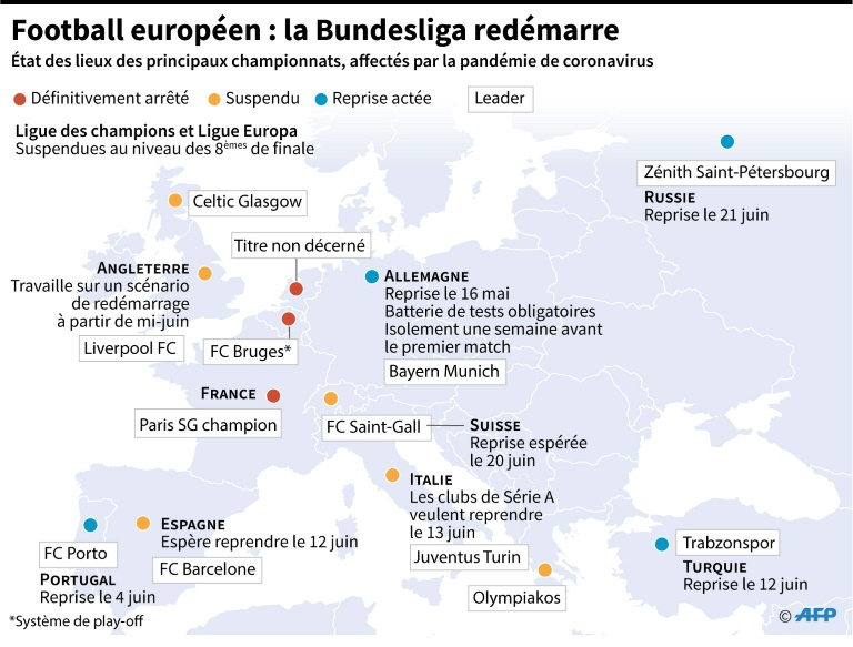 Pionnière en Europe parmi les championnat majeurs, l'Allemagne porte désormais la lourde responsabilité de montrer la voie à ses voisins comme l'Angleterre, l'Espagne et l'Italie, qui espèrent encore reprendre. Le succès ou l'échec de son opération "re-start" démontrera que le sport professionnel peut vivre - ou non - avec le coronavirus.