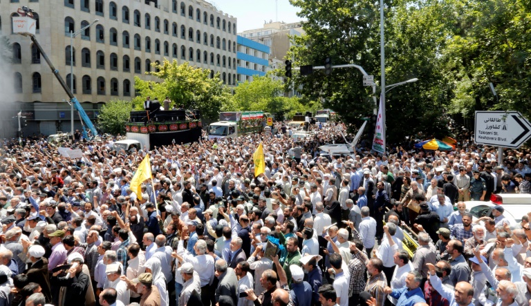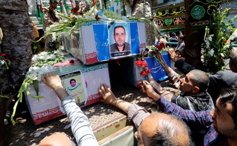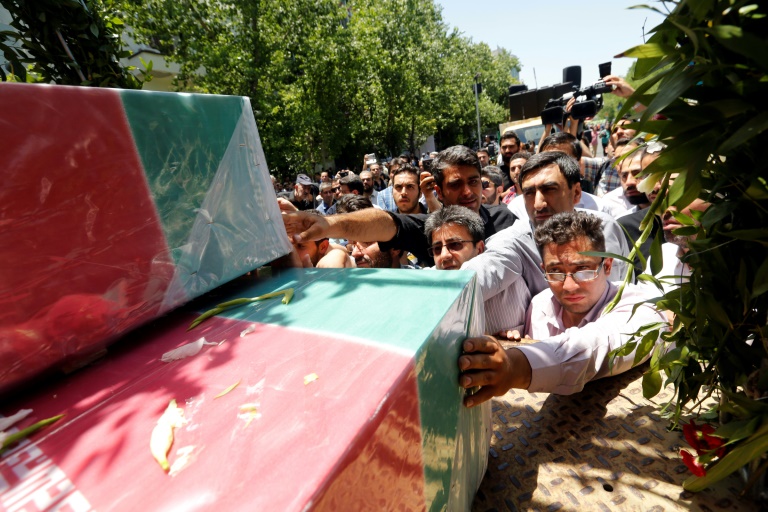 Sous une chaleur écrasante, la foule s'est rassemblée derrière un camion transportant les cercueils de 15 des 17 personnes tuées dans ces attentats ayant visé mercredi deux lieux hautement symboliques, le Parlement et le mausolée de l'imam Khomeiny, père fondateur de la République islamique.