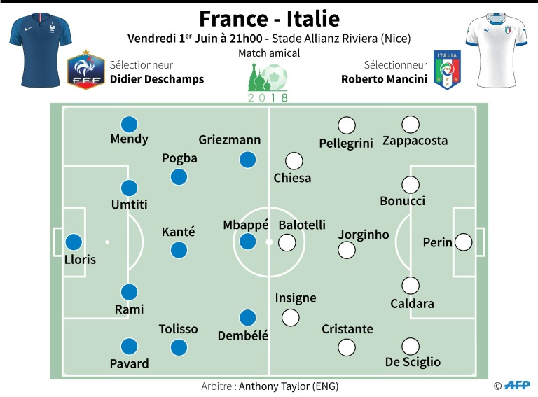 L'équipe de France affronte l'adversaire le plus huppé de sa préparation au Mondial-2018, l'Italie vendredi à Nice (21h00), un test capital notamment pour Paul Pogba, plus que jamais concurrencé par Corentin Tolisso dans l'entrejeu.