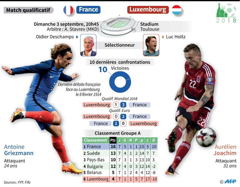 Garder la flamme sans s'enflammer: l'équipe de France, soulagée par sa démonstration jeudi face aux Pays-Bas (4-0) qui l'a approchée du Mondial-2018, doit désormais se remobiliser face au modeste Luxembourg et entretenir son élan offensif, dimanche à Toulouse (20h45).