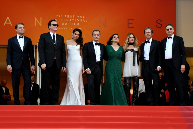 Point de grand show cette année, comme lorsque le réalisateur avait dansé avec Mélanie Laurent en 2009 ("Inglorious Basterds") puis avec Uma Thurman en 2014 pour les 20 ans de "Pulp Fiction", mais l'agitation frénétique des photographes et les cris du public marquaient l'importance du moment. L'équipe a été saluée par une longue salve d'applaudissements à son entrée dans la salle du Grand théâtre Lumière. Avant que la projection ne commence, le délégué général du festival Thierry Frémaux a expressément demandé aux spectateurs de ne pas dévoiler dans le détail l'histoire du film, relayant l'appel lancé la veille sur Twitter par Tarantino lui-même.