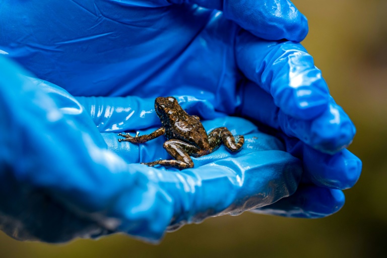 Atelopus longirostris est apparue, ou réapparue, pour la première fois en 2016. "C'était une grenouille qui revenait d'entre les morts", explique Andrea Teran que l'AFP a accompagnée lors d'une expédition dans cette zone forestière reculée après des heures de marche.