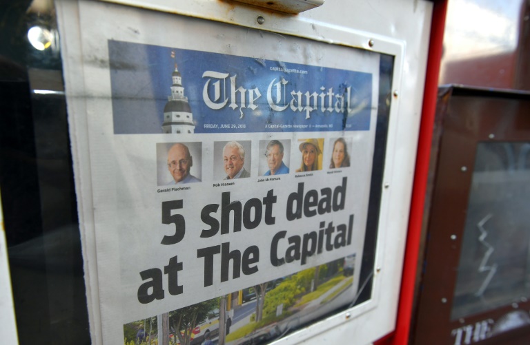 "Nous n'avons pas les mots": malgré le deuil, le Capital Gazette, journal américain du Maryland cible d'une attaque à l'arme à feu qui a fait cinq morts jeudi, a tenu à publier son édition de vendredi pour rendre hommage à ses journalistes tués.