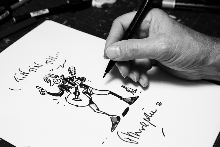 "Au départ je refuse, je me dis +c'est un truc opportuniste+", se souvient Margerin. "Puis je me dis +merde, tous les dessinateurs jouent le jeu et je ne suis pas dedans, Renaud va penser que je ne l'aime pas !+ (rires), alors j'y vais et j'ai même fait la couverture."