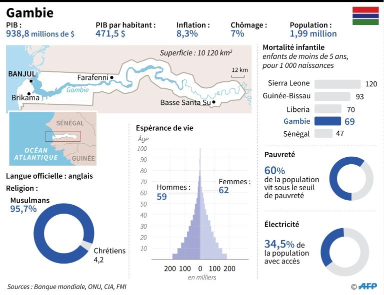 La Gambie, petit pays anglophone totalement enclavé dans le Sénégal, à l'exception d'une étroite façade côtière prisée des touristes, été dirigée d'une main de fer pendant 22 ans par Yahya Jammeh, un ancien militaire.