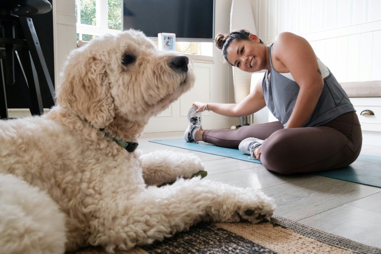 Cette employée du secteur marketing suit régulièrement les cours en ligne proposés par Mme Handford. Parallèlement, elle utilise l'application de visioconférence Zoom pour de courtes séances d'entraînement. Si sa maison est plus grande que la majorité des appartements de la mégapole, où les loyers sont parmi les plus élevés au monde, l'espace dont elle dispose pour pratiquer ne fait que quelques mètres carrés.. à partager avec son labradoodle de 30 kilos.