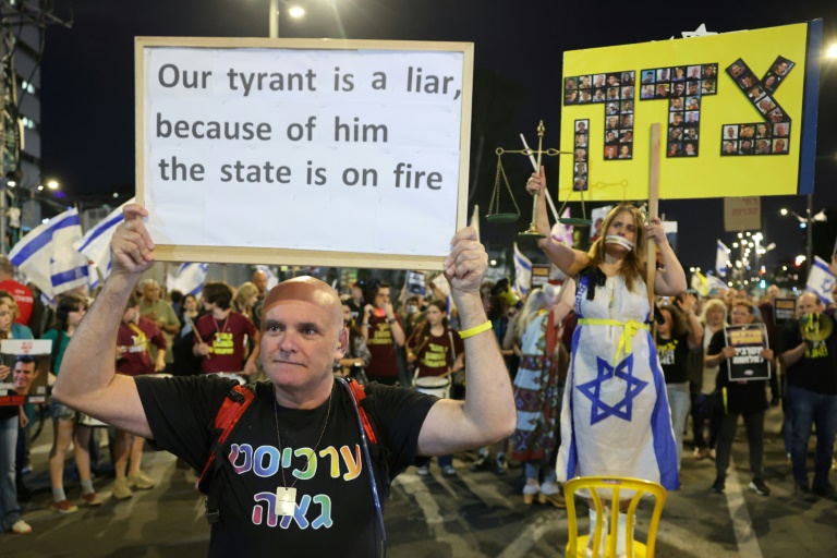 Samedi soir, quelques milliers d'Israéliens brandissant des portraits d'otages se sont à nouveau rassemblés à Tel-Aviv pour réclamer de leur gouvernement qu'il agisse pour obtenir leur libération.