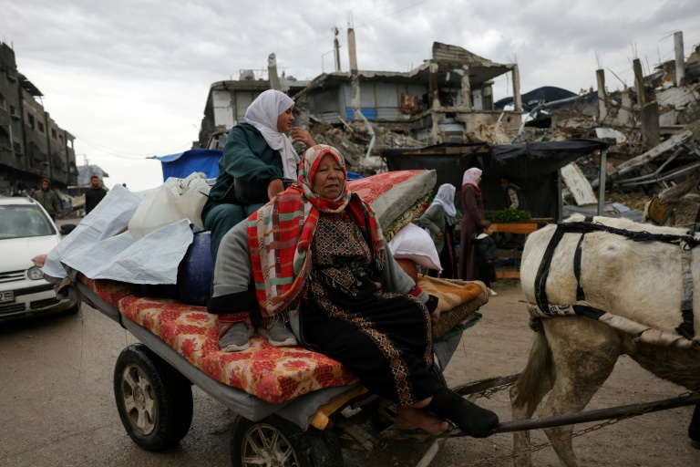 A Deir el-Balah, dans le nord de la bande de Gaza, des images tournées par l'AFPTV témoignent de l'exode des habitants fuyant une nouvelle fois avec des charrettes tirées par des ânes et remplies d'objets de première nécessité le long de routes bordées de ruines.