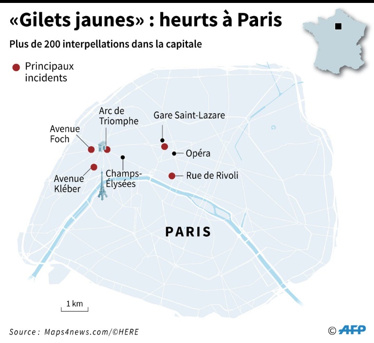 Emmanuel Macron convoque dimanche une réunion d'urgence à l'Élysée au lendemain des scènes de guérilla urbaine à Paris qui ont marqué une nouvelle escalade dans le conflit des "gilets jaunes" devenu une crise politique majeure.