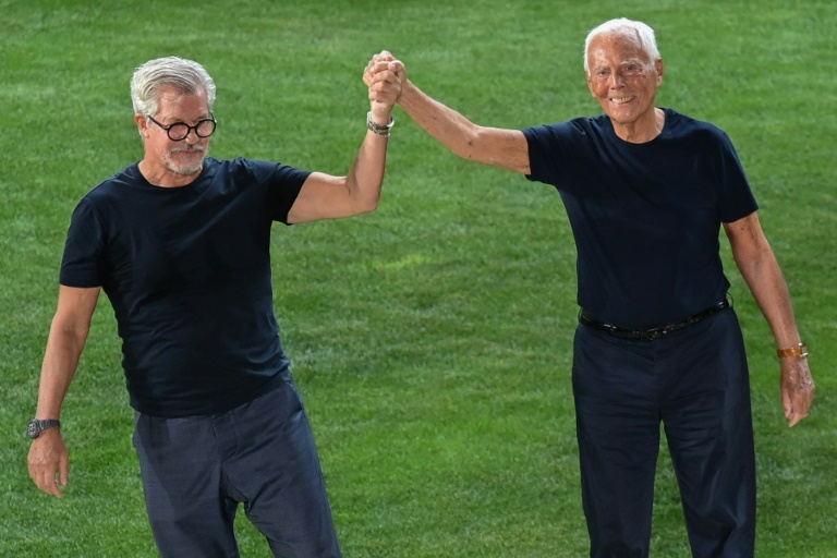Aux antipodes de la mode-spectacle que le styliste a toujours refusée, les mannequins ont défilé dans un cadre verdoyant et paisible, au sein de son siège historique de la via Borgonuovo, tout près du quartier de la mode. Souriant, teint toujours hâlé, cheveux blancs et yeux bleus, le vétéran de la mode italienne, au bras de son collaborateur de longue date Leonardo dell'Orco, a été vivement applaudi à l'issue du défilé.