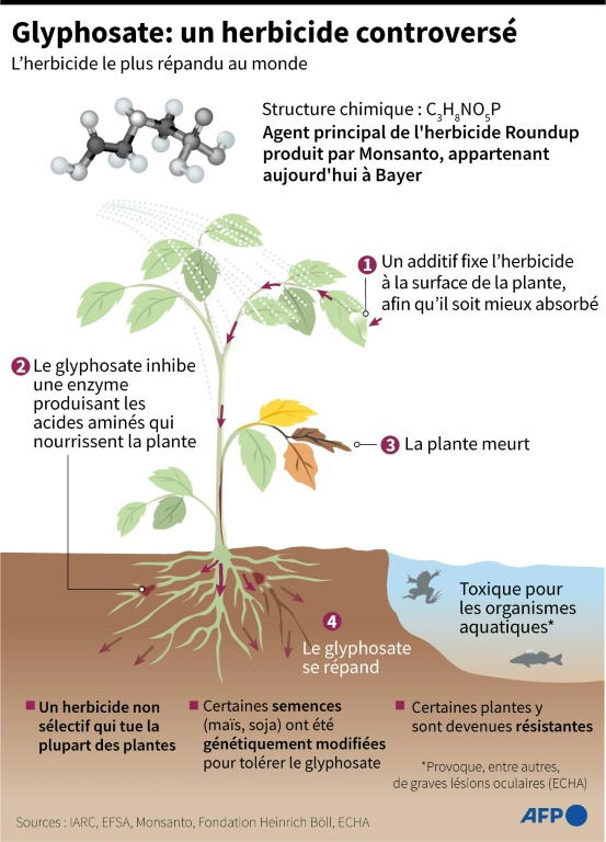 Le glyphosate, substance active de plusieurs herbicides — dont le célèbre Roundup de Monsanto, très largement utilisé dans le monde — avait été classé en 2015 comme "cancérogène probable" pour les humains par le Centre international de recherche sur le cancer de l'Organisation mondiale de la santé.