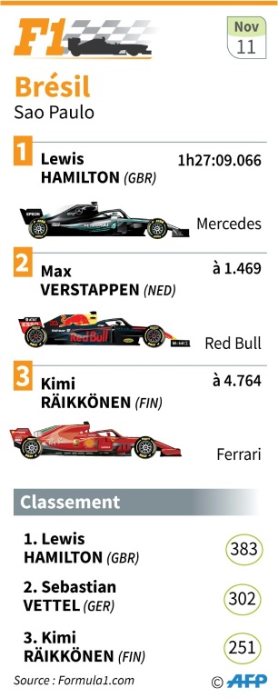 Le Britannique a résisté difficilement à son cadet de douze ans, mais il a fini par conquérir un 72e succès en carrière malgré des problèmes de pression d'huile et des gommes très abîmées. Lui-même sacré il y a deux semaines à Mexico pour la 5e fois, il pouvait savourer le nouveau triomphe de son équipe. "Les gars ont travaillé de manière incroyable depuis six ans, cela a été un formidable voyage avec eux", s'est félicité Hamilton avant de monter sur le podium et d'y esquisser quelques pas de samba.