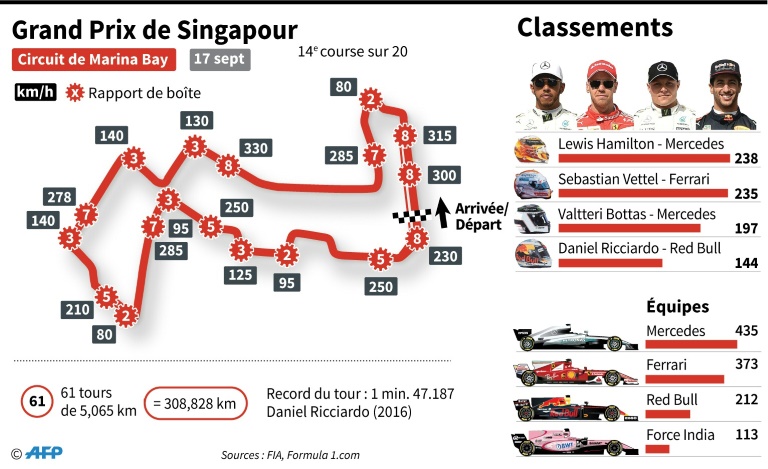Sur le circuit étroit et sinueux de Marina Bay, où les qualifications sont souvent décisives, l'Allemand de Ferrari ne pouvait ignorer la marche à suivre: en neuf Grands Prix sur le circuit de l'île-Etat depuis 2008, sept ont été remportés par le pilote s'élançant en pole. Or une victoire lui assurerait de reprendre la main dans la course au titre mondial, car trois points seulement le séparent du Britannique.
