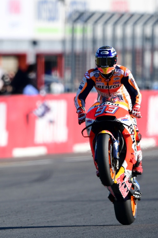 Tombé lui à 18 reprises en 2018 mais le plus souvent en essais, Marquez pouvait savourer son triomphe avant même de passer la ligne devant le Britannique Cal Crutchlow (LCR Honda) et l'Espagnol Alex Rins (Suzuki).