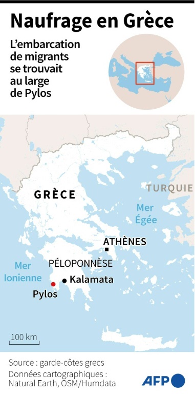 Au moins 59 personnes se sont noyées dans le naufrage d'une embarcation de migrants au cours de la nuit de mardi à mercredi au large de la péninsule du Péloponnèse, dans le sud-ouest de la Grèce, selon un nouveau bilan donné par les gardes-côtes.