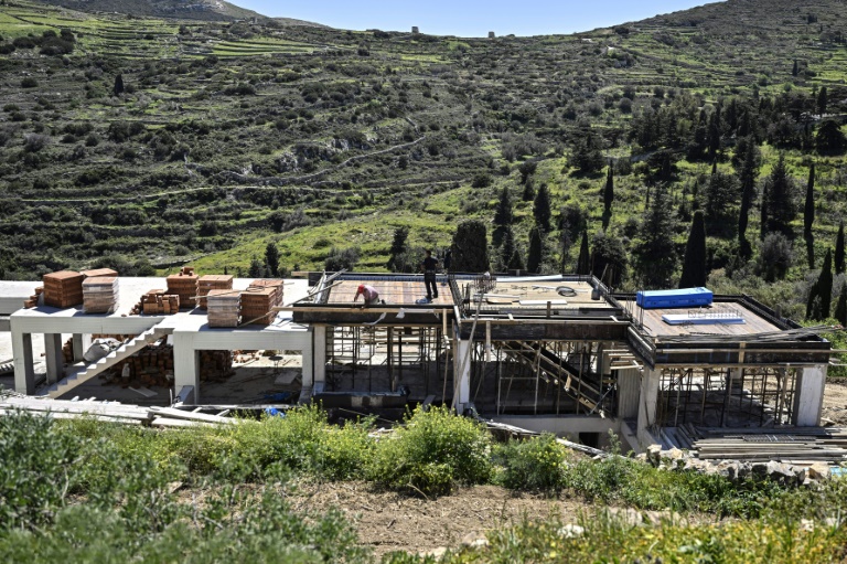 Le long de la route sinueuse reliant Naoussa aux villages traditionnels de Lefkes ou Marpissa, chantiers, complexes touristiques, villas luxueuses avec piscines et logements souterrains se succèdent, certains cachés dans des ravins.