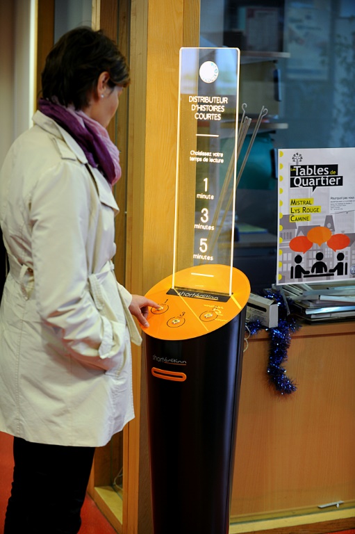 Place à la culture! Depuis quelques jours, Grenoble expérimente des distributeurs publics d'histoires courtes, une première dans l'édition en France, selon son concepteur."L'idée nous est venue devant un distributeur de barres chocolatées et de boissons et on s'est dit qu'on pourrait faire la même chose avec de la littérature populaire de bonne qualité pour occuper de petits temps morts", a déclaré lundi à l'AFP Christophe Sibieude, cofondateur et président de Short Edition, une start-up d'édition communautaire iséroise.