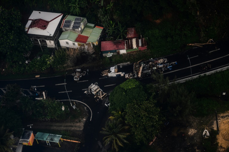 "Une vingtaine de barrages, sur 8 km", mènent jusqu'au bourg, selon Ludovic Tolassy, porte-parole du mouvement Moun Gwadloup et qui sert justement sur place d'"accréditation" aux médias.