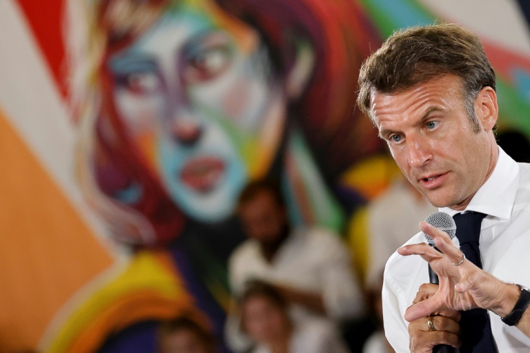 Face à elle, Emmanuel Macron écoute, prend des notes, le visage grave.