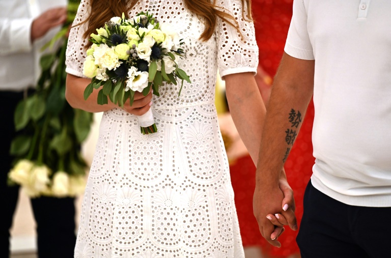 Le couple, qui s'est marié en juin à Krementchouk, ville industrielle à 250 kilomètres au sud-est de Kiev, fait partie d'une vague massive de mariages que connaît l'Ukraine depuis l'invasion par la Russie.