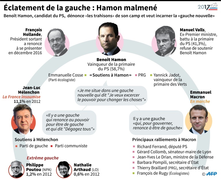 "Il y a deux gauches aujourd?hui en France vis-à -vis desquelles je veux prendre mes distances", a-t-il affirmé, visant tour à tour ses adversaires Emmanuel Macron et Jean-Luc Mélenchon.
