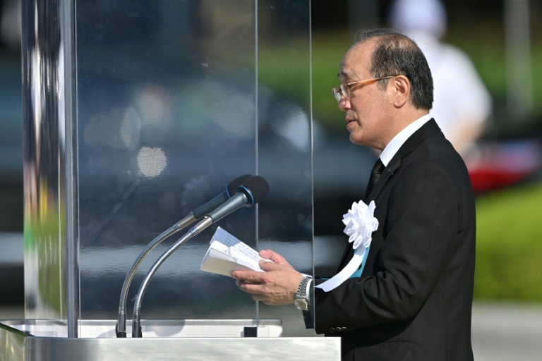 "Les Etats-Unis et la Russie possèdent 90% des ogives nucléaires mondiales et, dans le contexte de l'invasion de l'Ukraine par la Russie et des tensions au Moyen-Orient, on observe une tendance accélérée au renforcement militaire", a déploré le maire de la ville, Kazumi Matsui.