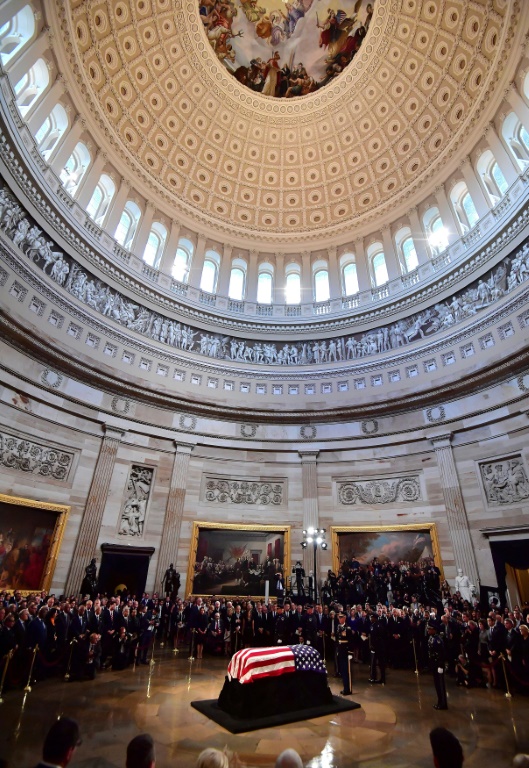 Des centaines de personnes ont commencé vendredi à défiler devant le cercueil de John McCain, exposé au Capitole à Washington, après une cérémonie solennelle rare en l'honneur de l'ex-candidat républicain à la présidentielle, au style franc-tireur. "Le président m'a demandé d'être ici présent, de la part d'une nation reconnaissante", a déclaré le vice-président Mike Pence lors d'un discours devant le cercueil, couvert d'un drapeau américain.