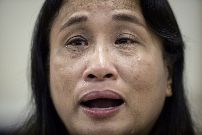 Vergie Anos, 51 ans, vit à Hong Kong depuis 22 ans. Son fils avait un an quand elle a quitté l'archipel. Elle aussi pleure en se rappelant sa décision. "Même maintenant, cela m'émeut tellement".