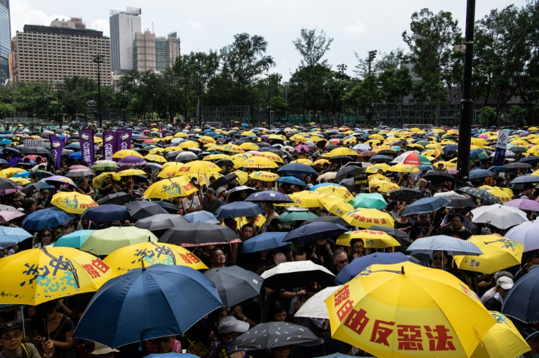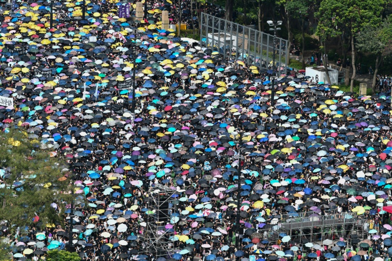 Des dizaines de milliers de manifestants ont de nouveau envahi les rues de Hong Kong dimanche en signe de protestation contre le gouvernement pro-Pékin du territoire semi-autonome, pour le septième week-end d'affilée.