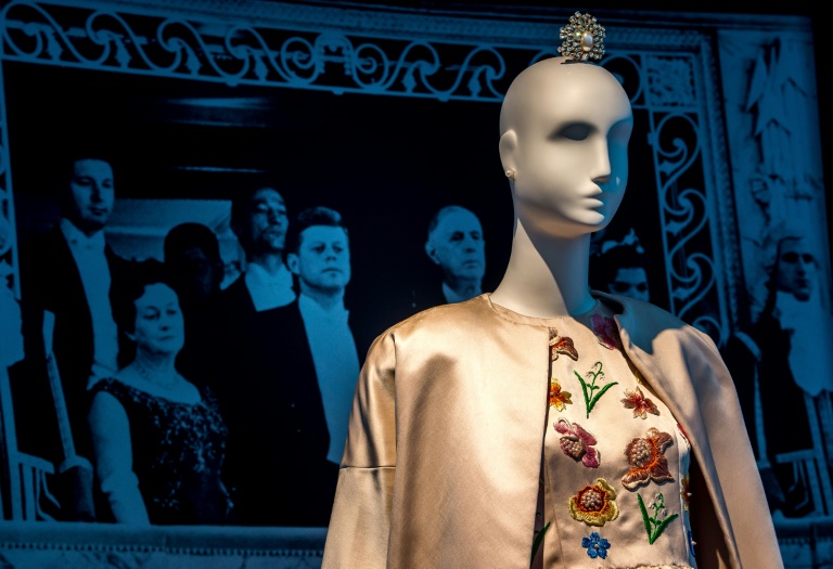 La rétrospective compte 90 tenues et accessoires, dont plusieurs pièces ayant été portées par ses célèbres clientes. Parmi elles encore: la robe brodée au corsage que portait Jackie Kennedy lors de la visite officielle du couple présidentiel américain en France en 1961. "Habiller Jacqueline Kennedy a été un vrai coup de pouce pour la maison de couture", reconnaît le couturier sur un cartel de l'exposition.