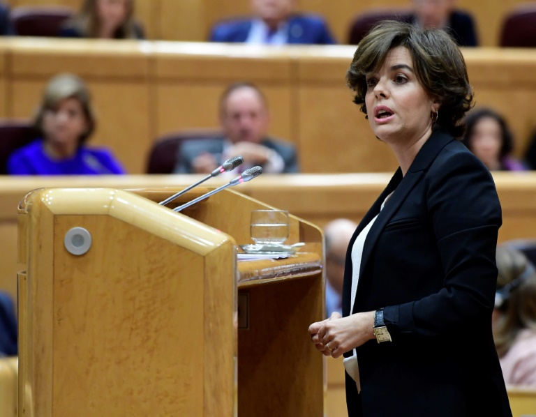 La vice-présidente s'exprimait devant une commission du Sénat chargée d'examiner la demande de Madrid, qui souhaite déclencher l'application de l'article 155 de la Constitution pour contrer les menaces de déclaration unilatérale d'indépendance en Catalogne. Le Sénat devrait l'approuver en séance plénière vendredi.