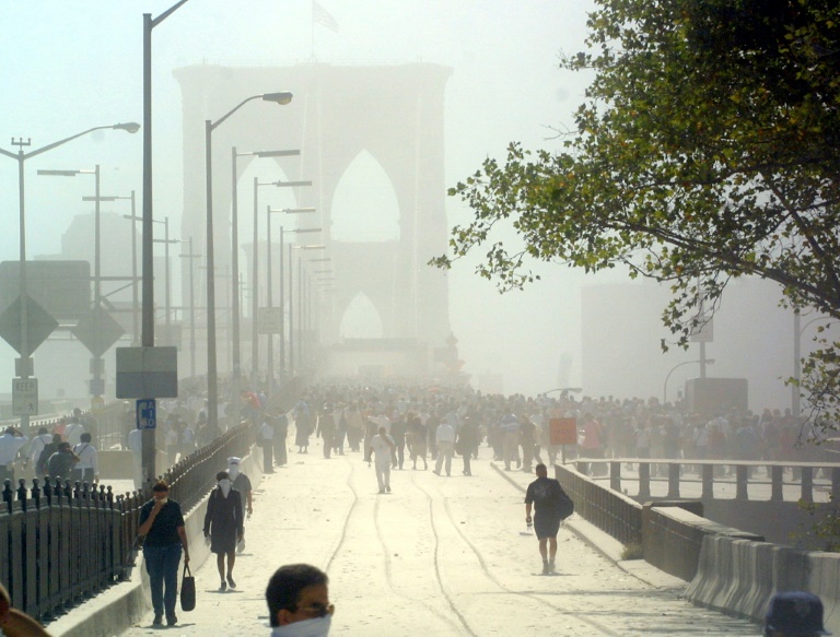 Il est 09H59 et Al Kim, 37 ans, ambulancier basé à Brooklyn, vient juste d'arriver au WTC pour aider à évacuer les blessés vers l'hôtel Marriott, situé entre les tours. Il échappe in extremis à l'anéantissement. "Je ne pouvais plus respirer, tellement il y avait de fumée dans l'air. Je me souviens avoir utilisé ma chemise pour me couvrir la bouche. Je ne voyais même pas mes mains, devant mes yeux," raconte-t-il à l'AFP en visitant cet été, pour la première fois, le