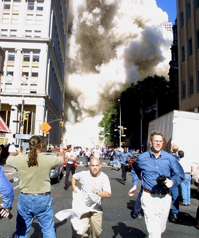 Les débris pleuvent de partout, les secouristes dirigent Dittmar et son collègue vers le centre commercial sous le WTC. Parvenus à l'autre bout, ils ressortent dans la rue et marchent quelques minutes avant d'entendre, derrière eux, le fracas assourdissant de la tour sud qu'ils viennent de quitter. Et, quasi-instantanément, "le cri" de milliers de New-Yorkais.