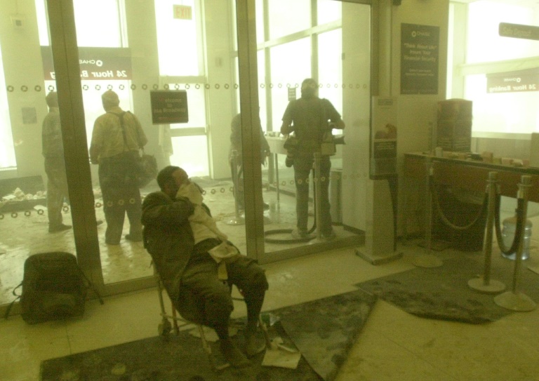 Arrivé au rez-de chaussée, après 50 minutes environ, le sol est jonché d'acier tordu, de ciment et de tâches de sang. "On savait ce que c'était", dit-il avec pudeur. Les images de gens prisonniers des flammes, tombant dans le vide, seront parmi les plus cauchemardesques de cette journée.