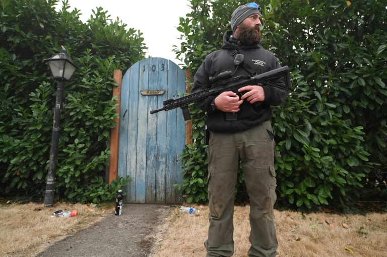 Matt Watts, 37 ans, fait le guet devant chez lui pour décourager les pilleurs, fusil semi-automatique en bandoulière et pistolet à la ceinture. "Je n'entendais que des histoires de pillages et d'incendies criminels sur mon scanner et comme je n'avais pas peur que ma maison brûle, j'ai décidé de rester pour la protéger", dit-il. "J'espère juste dissuader ceux qui nous veulent du mal", affirme-t-il, tout en assurant être prêt à utiliser ses armes.