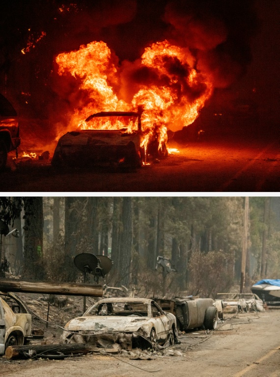 Tami Kugler, une habitante qui a fui Greenville, assise près d'une tente installée sur un site d'évacuation, a raconté sa course contre le feu à l'AFP: "C'était comme conduire pour sortir d'une zone de guerre, comme on le voit dans les films." "Mon quartier n'existe plus -- je veux dire plus du tout. Les maisons de tous ceux auxquels je tiens et que j'aime dans ce quartier ont disparu", lâche-t-elle.