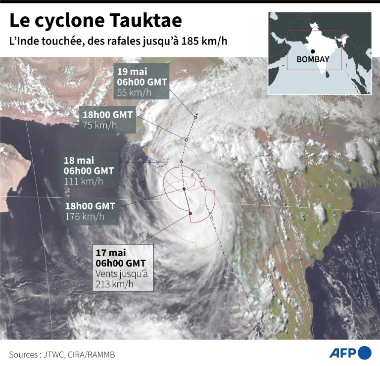 Au moins 21 personnes ont péri et 96 autres restaient portées disparues dans l'ouest de l'Inde mardi après le passage de la tempête cyclonique Tauktae, qui a provoqué la suspension de la campagne de vaccination contre anti-Covid dont le pays ravagé par l'épidémie a tant besoin.