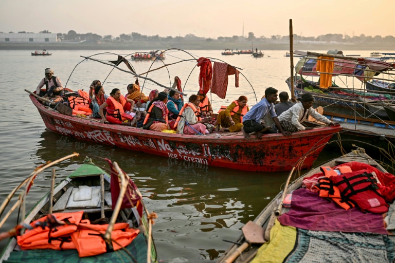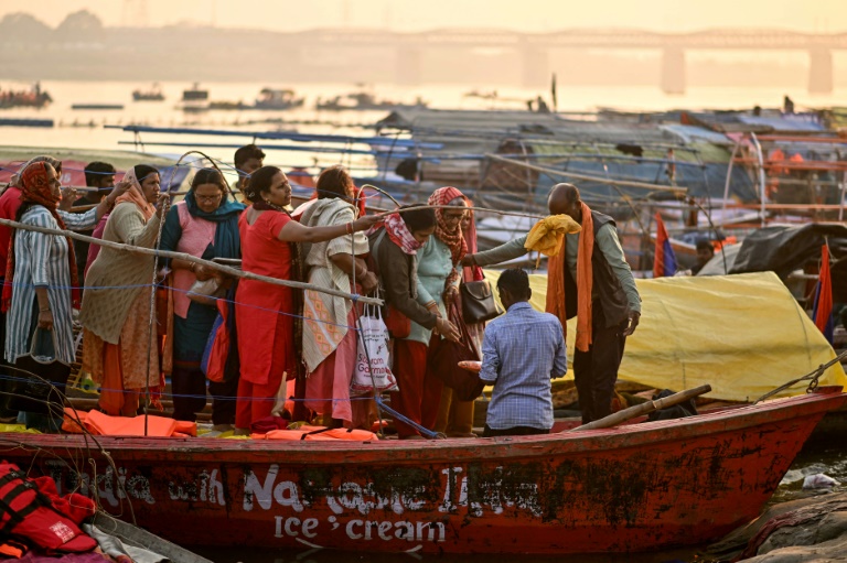 Tous les 12 ans, à Prayagraj (nord), des dizaines de millions de fidèles venus de tout le pays et de l'étranger viennent se baigner dans le Sangam, à la confluence du Gange, du Yamuna et du Saraswati, pour se laver de leurs péchés et interrompre le cycle de la réincarnation.