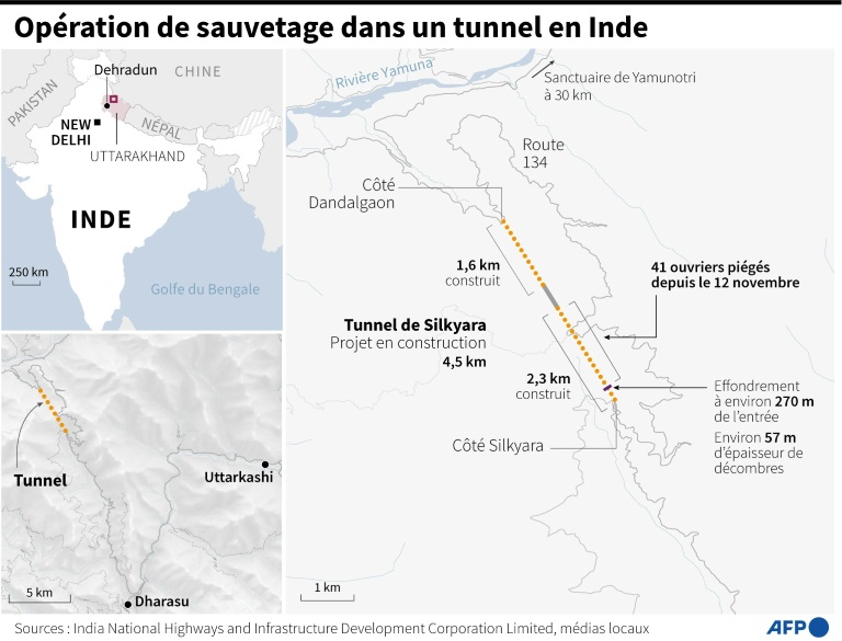 Engagées dans une véritable course contre la montre, les équipes de secours indiennes ont sauvé mardi les 41 ouvriers piégés depuis 17 jours dans le tunnel effondré de Silkyara, où des ambulances quittaient l'entrée du site.