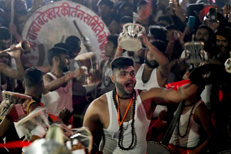 Des dizaines de milliers de fidèles chantant et dansant, avec force klaxons et tambours, ont convergé vers la ville d'Ayodhya, dans le nord du pays, à pied ou circulant sur des routes embouteillées et des trains bondés.