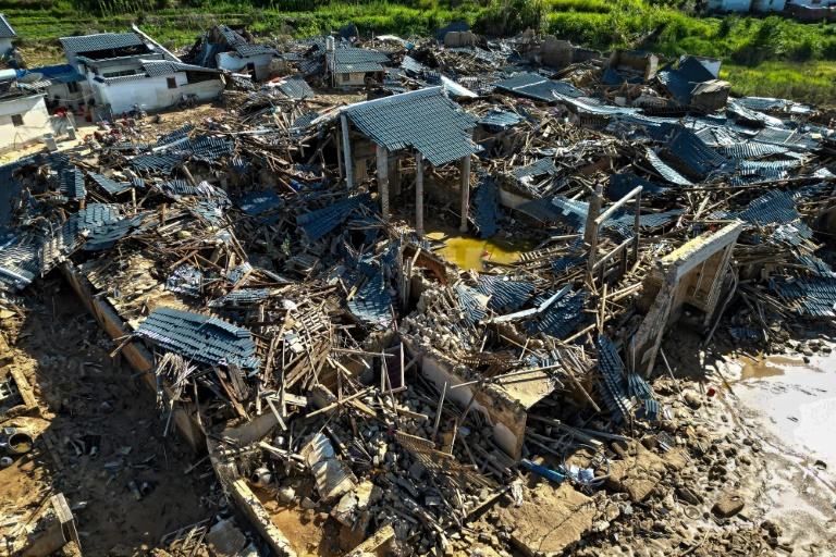 Des images diffusées vendredi par CCTV montrent un village entier inondé par des eaux boueuses qui se heurtent à la maçonnerie brisée et aux toits, dont les tuiles sont manquantes.