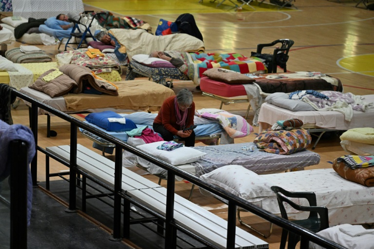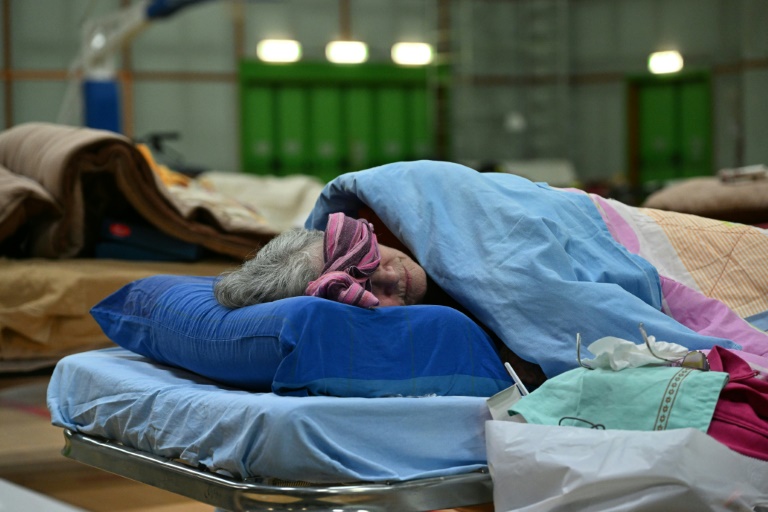 Arrivée mercredi dans cette grande salle reconvertie en dortoir avec son mari âgé de 97 ans, Ludmilla se retrouve aujourd'hui seule: "on l'a emmené à l'hôpital, car on ne peut pas garder une personne de son âge ici", explique-t-elle à l'AFP, installée sur son lit.
