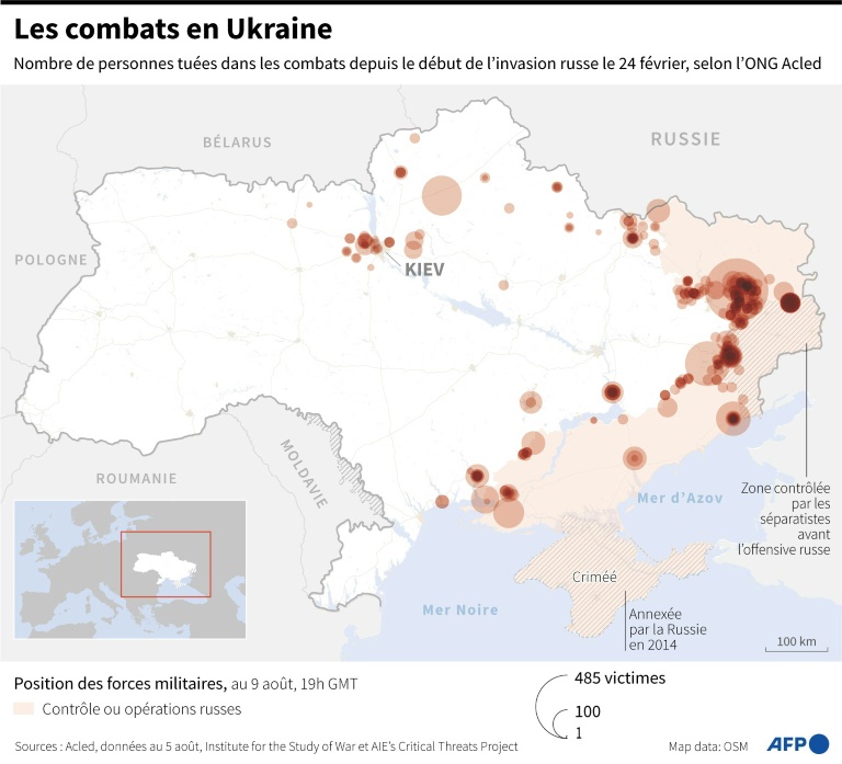 Les bombardements ont continué dans la nuit de mercredi à jeudi sur la ligne de front en Ukraine, y compris non loin de la centrale nucléaire de Zaporijjia qui sera dans la journée au menu d'une réunion du Conseil de sécurité de l'ONU.